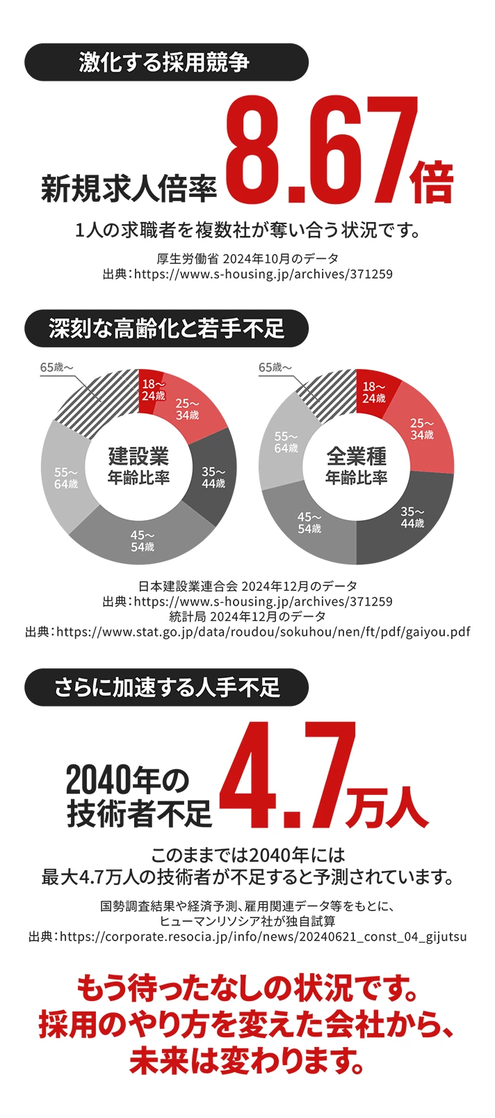 私たちは建設業界の専門メディアです。業界の採用課題を深く理解しているからこそ、現場が本当に求める「かゆい所に手が届く」サービスを提供できます。